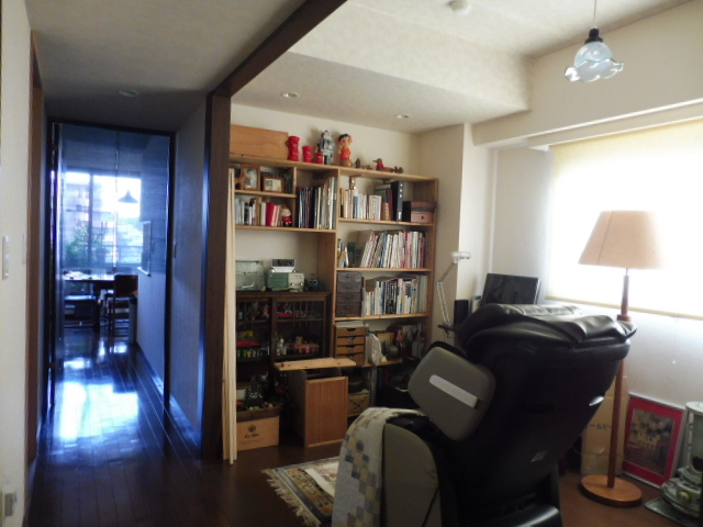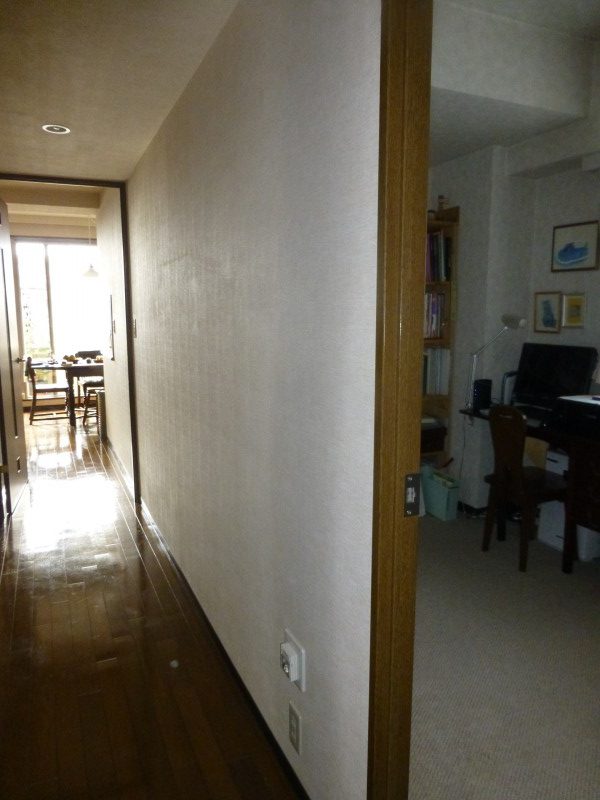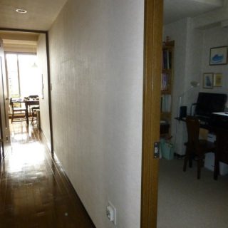 ご夫婦二人だけのお住まいということで、部屋数は必要ありません。玄関からの廊下と隣接する一部屋を一体化して広く使えた方がいいとお考えでした。マンションの場合、間仕切り壁は構造上取り外しても差し支えありません。同時に、個室周りの床がカーペットでしたので、廊下の仕上げと合わせてフローリングにします。