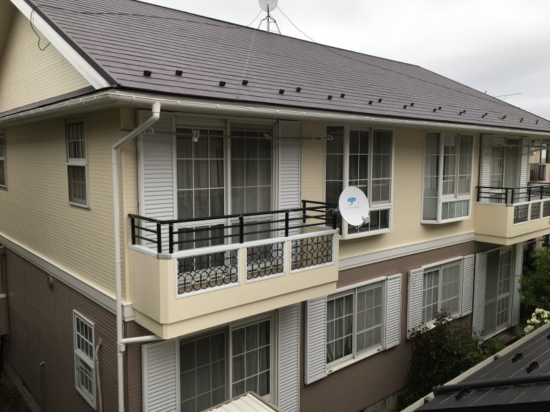 築20年を過ぎた賃貸住宅。次世代へ引き継ぐために10年ごとの塗装メンテナンスを実施していらっしゃいました。今回も外回りすべてを塗装しました。
