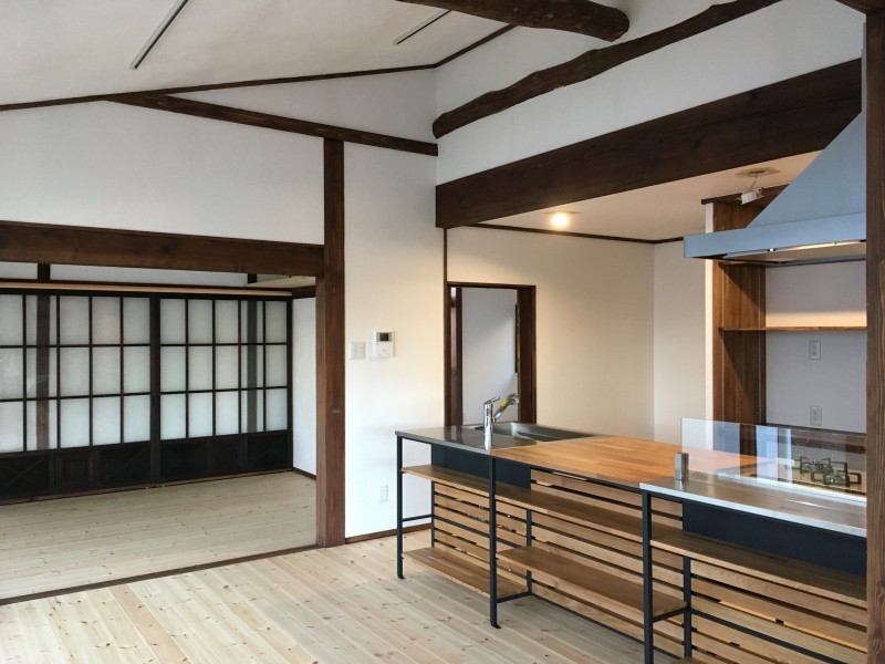 年月を経て反ったり曲がったりした木材に合わせて仕上げていくのはたいへんでしたが、広々とした楽しい平屋住宅ができあがったと思います。