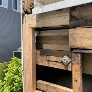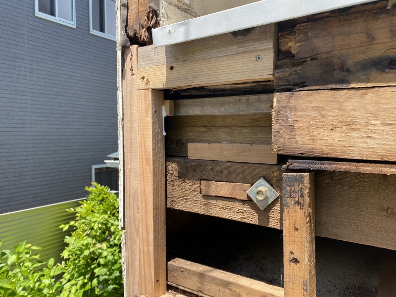 ベランダ外壁の痛み(反りが見られた)は、水切りの板金と外壁サイディングから雨水が入っていたことが原因。