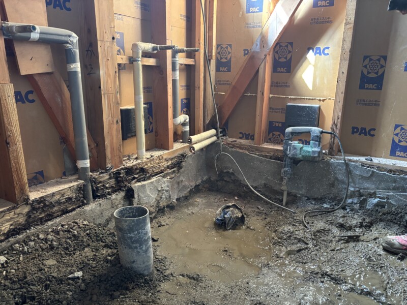 ベタ基礎も水が入り込むと抜けにくいので、浴室はやっぱりユニットバスが良いですね。