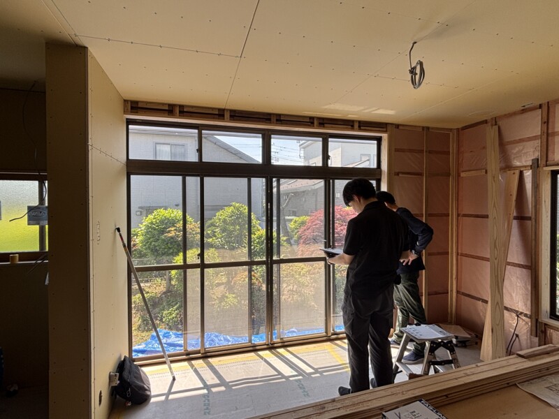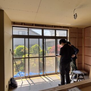 内部をほぼ解体しますので、内装工事の前に断熱の補強を行いました。
