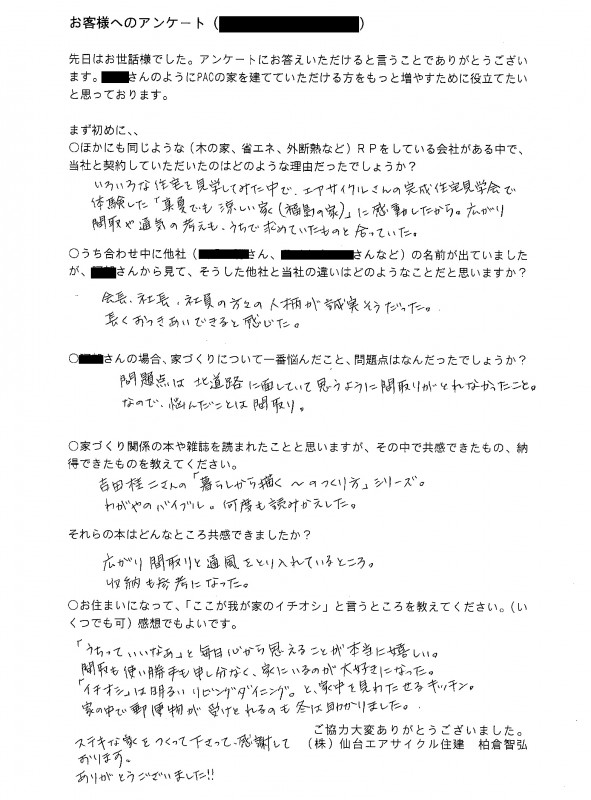 ステキな家をつくって下さって,感謝しております。 ありがとうございました!!