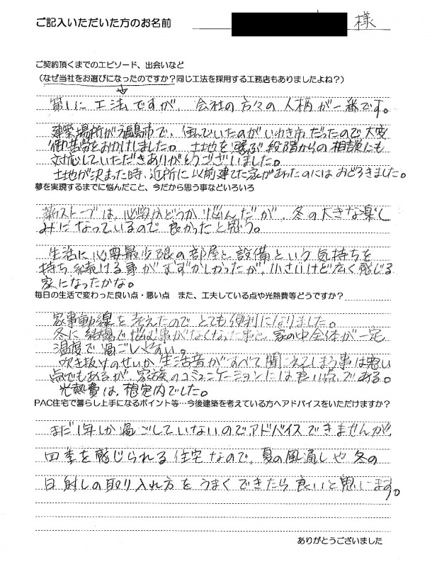 Q.なぜ当社をお選びになったのですか? 同じような工法(外断熱や通気工法)を採用する会社もありましたよね。